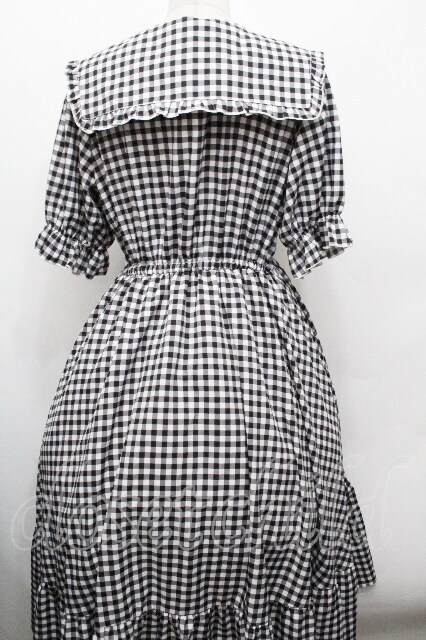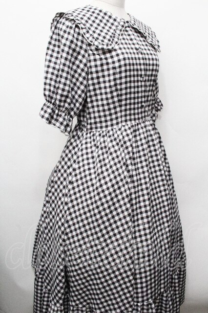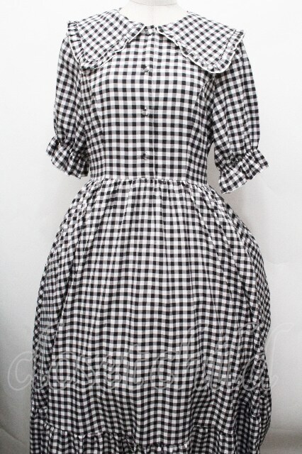 m petit by misako / TT*Mギンガムチェック半袖ワンピース L 黒x白 S-26-04-30-1034-LO-OP-AS-ZS