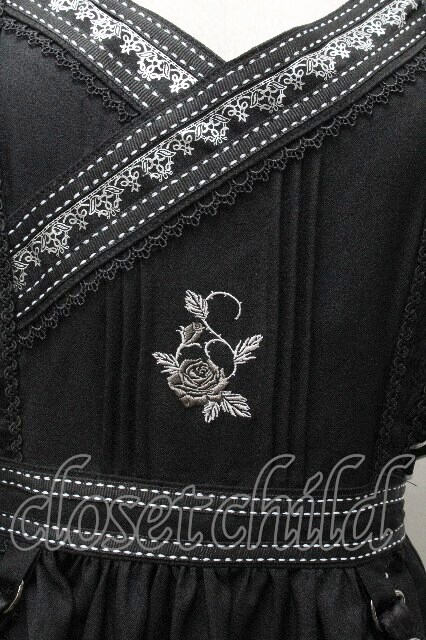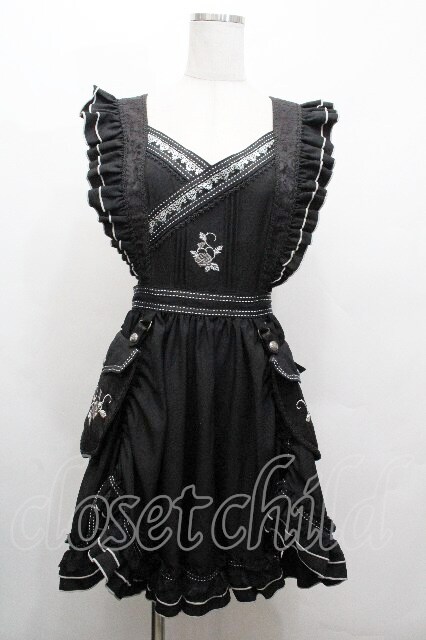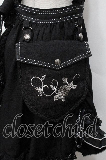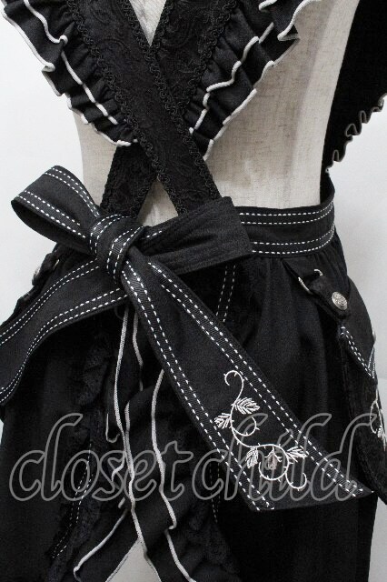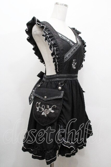 Ozz oneste / 薔薇刺繍エプロン 黒 S-26-04-30-1037-OO-TO-HR-ZS