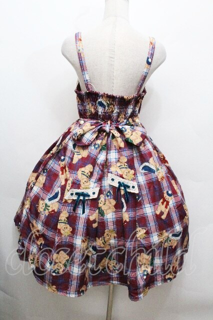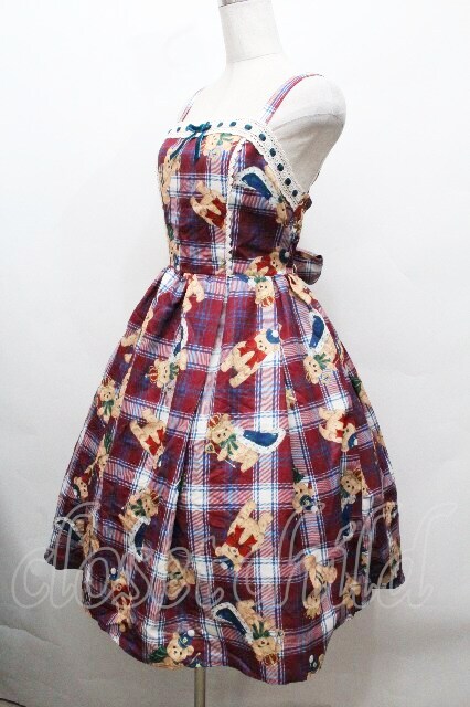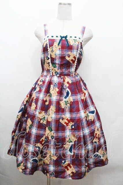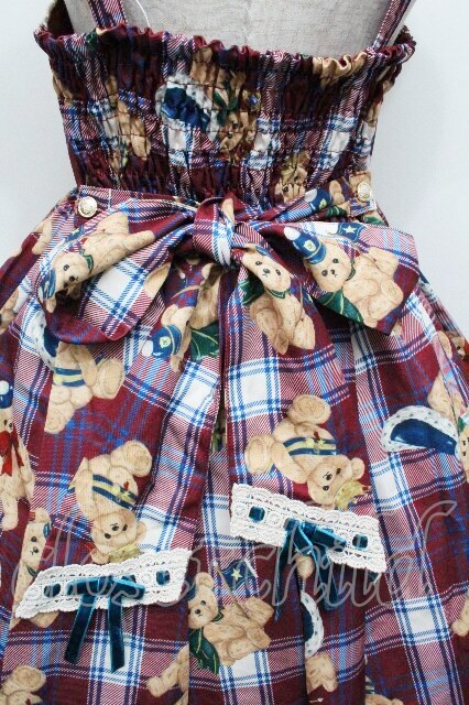 axes femme kawaii / ロイヤルベアーズ柄ジャンスカ 赤 S-26-04-30-1039-AX-OP-AS-ZS