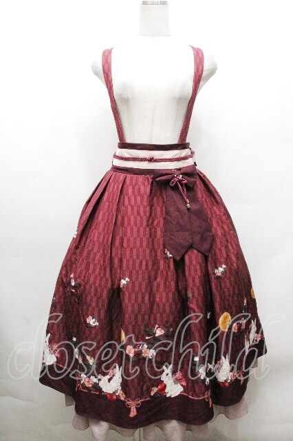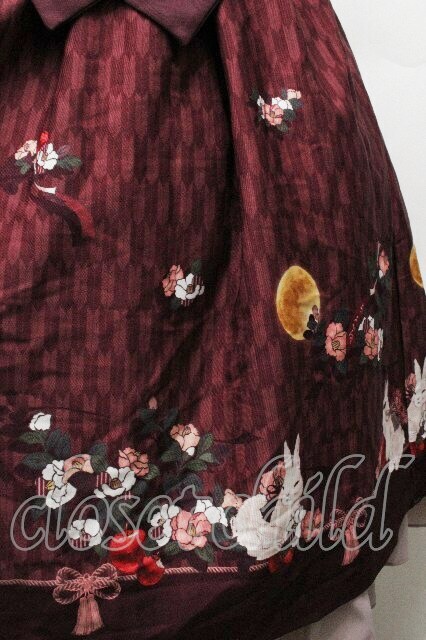 Amavel / お月見うさぎの和風スカート エンジ S-26-04-30-1050-CA-SK-AS-ZS