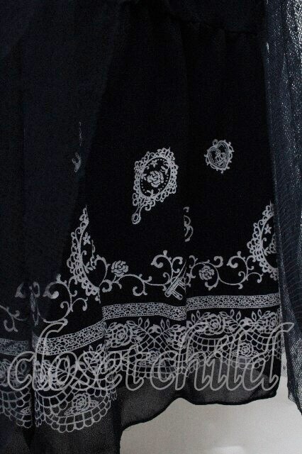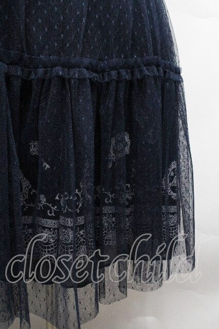 axes femme / 裾プリントチュールロングスカート 紺 S-26-04-30-1058-AX-SK-HR-ZS